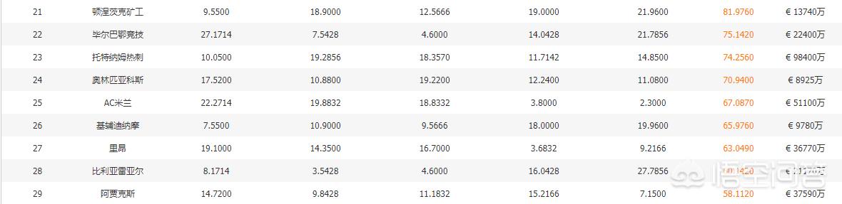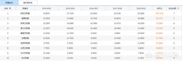 荷甲联赛排名第10位,主要原因是荷甲球队欧战成绩一般,积分较少。