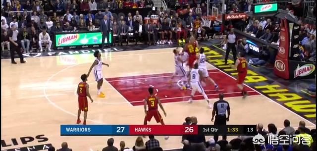 事情发生在第一节还剩1分30多秒的时候,当时勇士以27:26仅仅领先1分,双方出乎意料地打得有点难分难解。