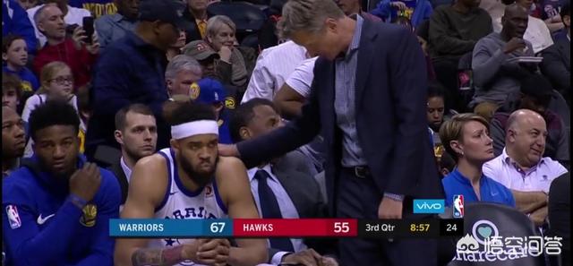 经过中场休息,第三节库里还是继续上场。但勇士打了还不到四分钟,就失误连连,又犯了注意力不集中的毛病,于是科尔怒火中烧,开始大换人员,还特意去“批评”了一下麦基!