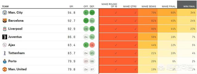 好吧,题主的问题虽然简单到稍微看欧冠的球迷都知道结果。但还是继续说下今年欧冠8强晋级和夺冠概率。
