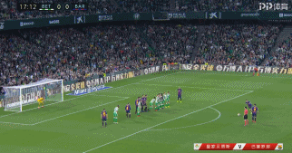 西甲第28轮,巴萨客场4-1贝蒂斯。比赛第18分钟,巴萨获得任意球,梅西在禁区弧顶踢出了他标志性的左脚弧线球,皮球越过人墙直挂球门左上死角!这一脚举重若轻的射门,球王似乎更在意射门的角度与精度。