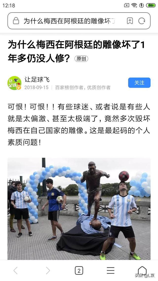 马上会有一些在美洲杯决赛没有任何贡献还罚丢点球的人的球迷开始喷,但是改变不了雕像在阿根廷被砸几年没人修的事实。