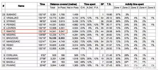 难怪在比赛中,感觉拉基蒂奇双腿发软,步伐沉重,本以为是疲劳作战导致体力不支,原来有此隐情。 赛后的数据统计显示,拉基蒂奇打满了132分钟(包括加时赛以及补时),全场跑动距离达到了14.5公里,其中在加时赛里,跑了3.8公里,是全队跑动第二多的球员。30岁,赛前高烧,拉基蒂奇的表现令人惊叹。