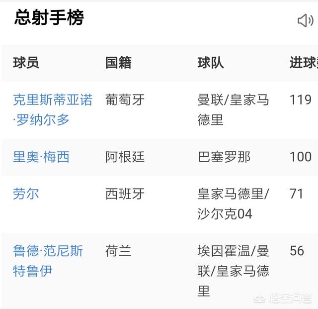 如果达到了前面那个前提条件,我觉得C罗的记录更加难以实现,我们看一下欧冠历史的总射手榜,C罗目前打进了119球,梅西打进了100球,排名第三的劳尔只有71个进球,C罗和梅西要远远领先于后面的球员,而且这个差距还会继续被拉大。当然我们这里只说119球。通过总射手榜我们可以发现第四名的范尼只有56球,跟劳尔相差了15球,也就是说劳尔的71球已经是一个瓶颈了,而劳尔与C罗的差距还有48球,这个鸿沟之大可想而知,而在世界杯历史总射手榜上,罗纳尔多历史射手王的位置早已被克洛泽的16球取代了,而且在他身后还有差距不大的盖德穆勒和方丹,他们分别打进了14球和13球,因此它并不像C罗的进球记录那么遥不可及。